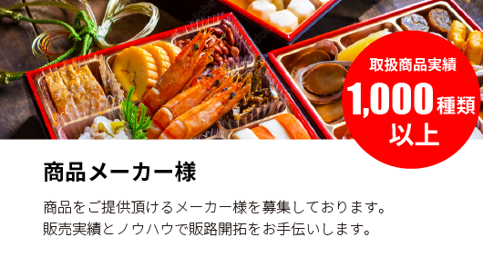 食品関係から日用品・防災グッズなど幅広いジャンルの商品を開拓可能です。※冷蔵食品など一部制限はあります